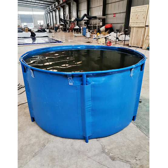 This is Easy Setup Collapsible PVC Tarpaulin Fish Tank Farming Backyard Round Fish Tank, It is a combination of high-tech PVC composite fabric and demoutable hard PVC plastic tube round shap with good stability;simple operation and easy management; only 1-2 people can be deployed quickly, and customized drain size is easy to change the water.small in folding size, easy to transport and store best choice for small-scale fish farming, backyard fish farming etc..