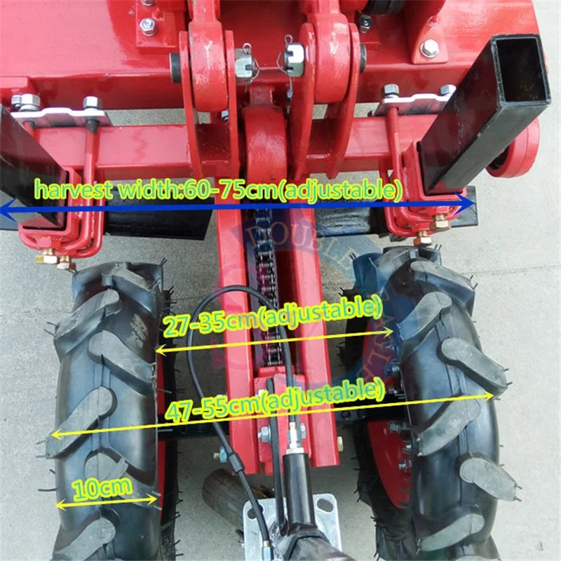 2) Harvesting 4 row each time ,You can adjust the spacing of the walking wheel and the blade spacing according to the crop row spacing