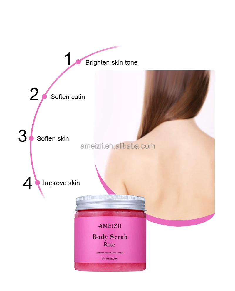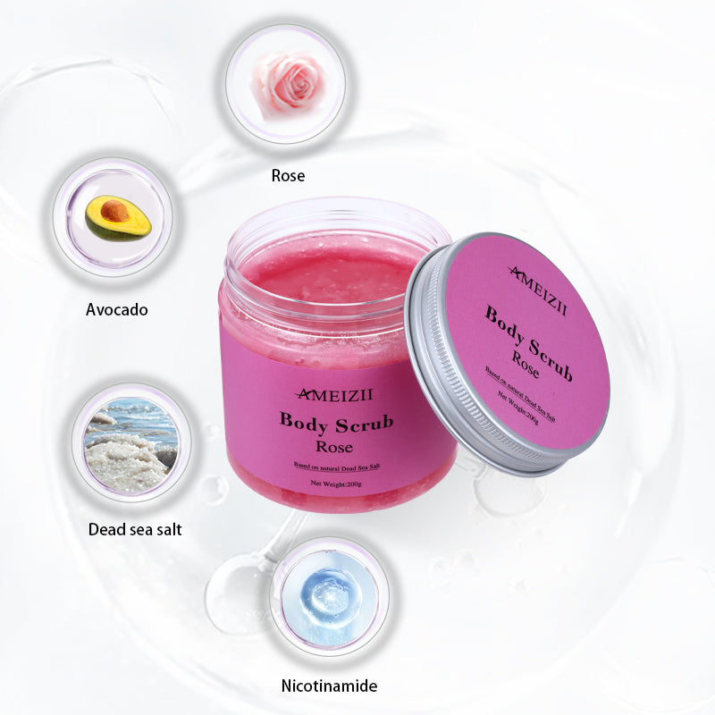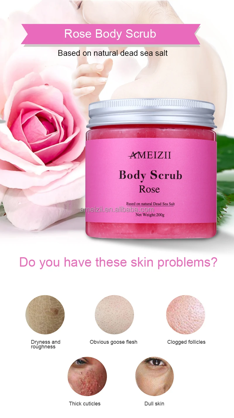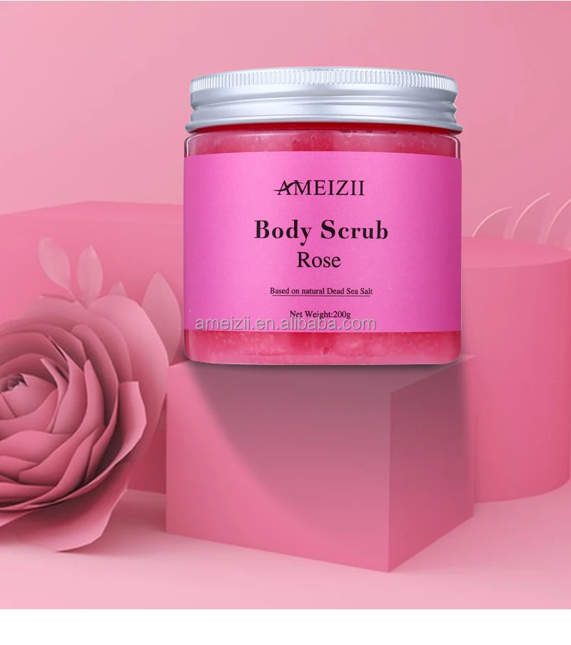 Wholesale Rose Body Scrub Blanquear Exfoliante Corporal Skin Cleansing Bodyscrub Gommage Corps Whitening Exfoliating Bath Scrub