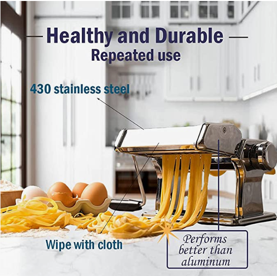 Stainless Steel Manual Pasta Maker Machine With Adjustable Thickness Settings Perfect for Professional Homemade