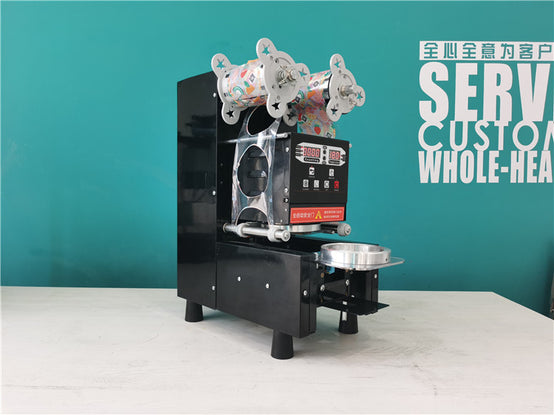 The cup sealing machine, not only can seal plastic cup , but also seal paper cup, each machine take two mold, like 95mm sealing cup mold & 90mm sealing cup mold, or 75mm sealing cup mold & 70mm sealing cup mold. One minutes can seal 6cups drinks. Very popular in restaurant, dessert shop, beverage shop, milk tea shop, coffee shop , ect.