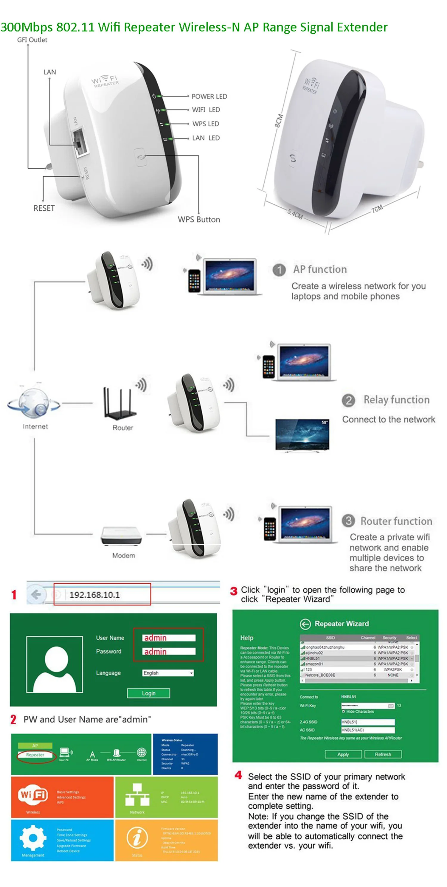 Wireless-N Wifi Repeater 802.11n/b/g Network Wi Fi Routers 300Mbps Range Expander Signal Booster Extender WIFI Ap Wps Encryption