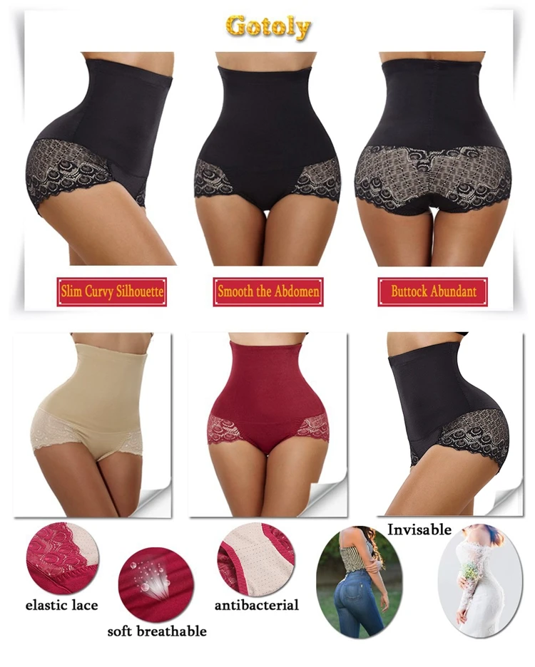 Women Lace Butt Lifter Panty High Waist Tummy Control Slim Waist Trainer Lace Body Shaper