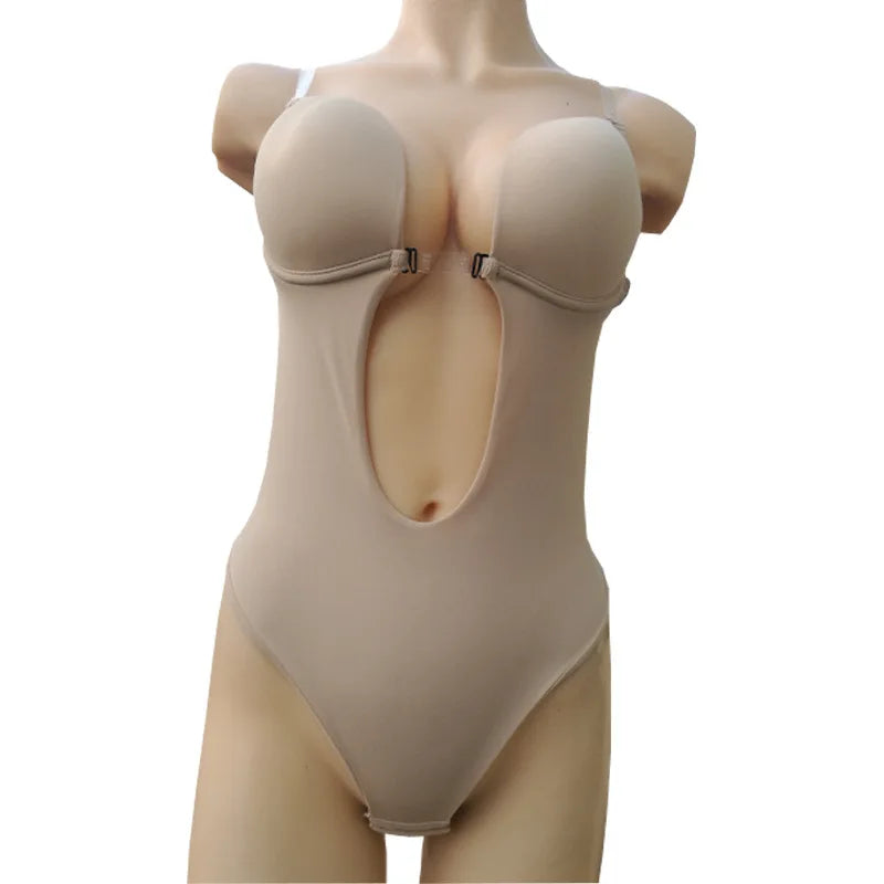 Women Plunging Deep V-Neck Body Shaper Strapless Backless Bodysuit Shapewear U Plunge Seamless Thong Full Bodysuits For Wedding