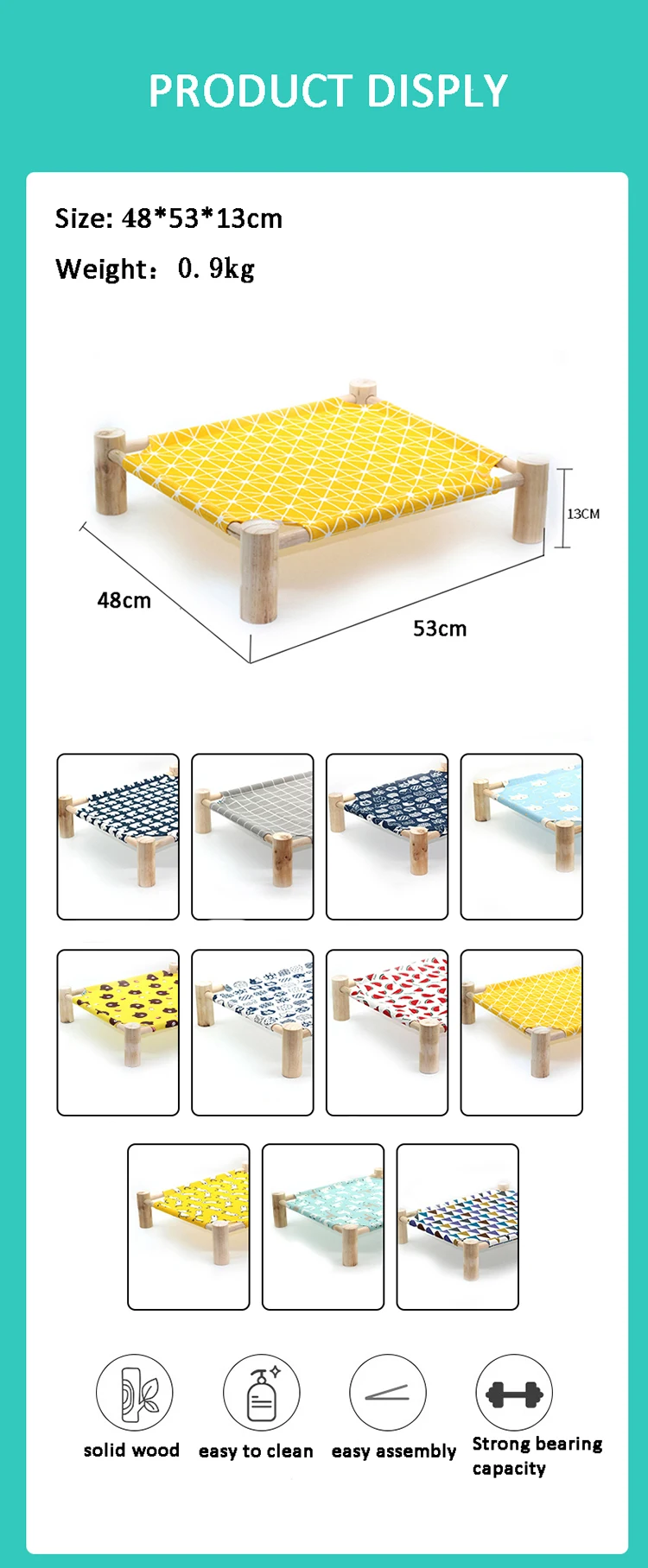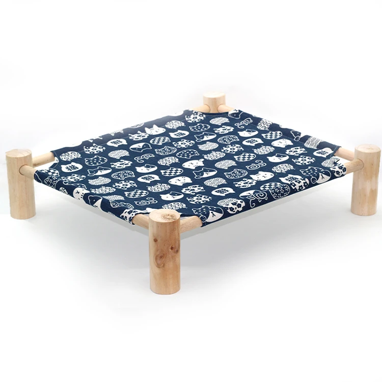 Wooden Elevated Portable Cooling bed Cat Hammock with stand Washable Cotton Canvas bed Pet Dog Cat Bed Raised
