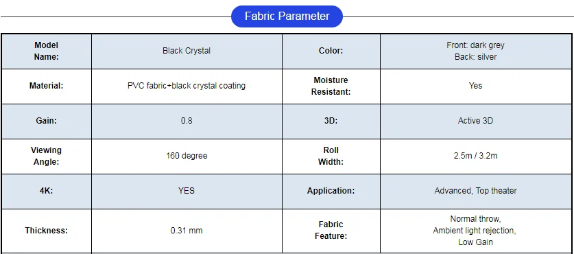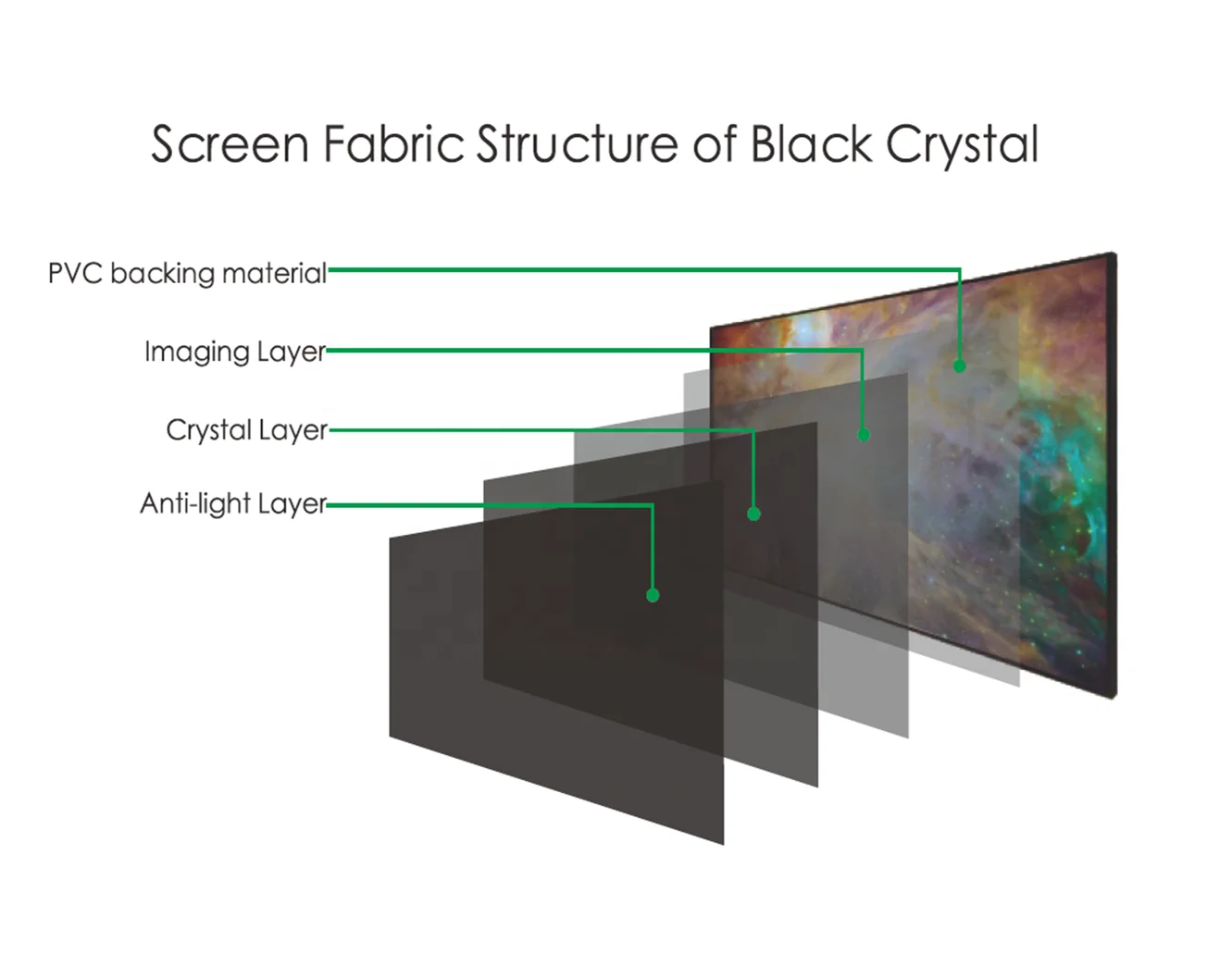 Black Crystal is made of PVC, which is coated with special anti-light material, which absorbs ambient light and lamplight. This