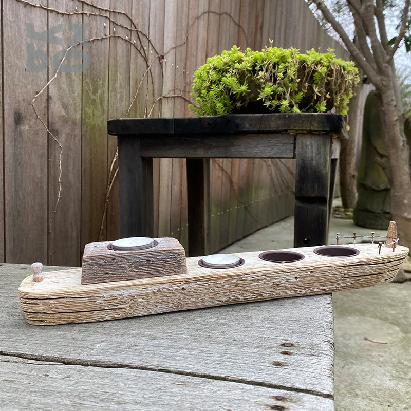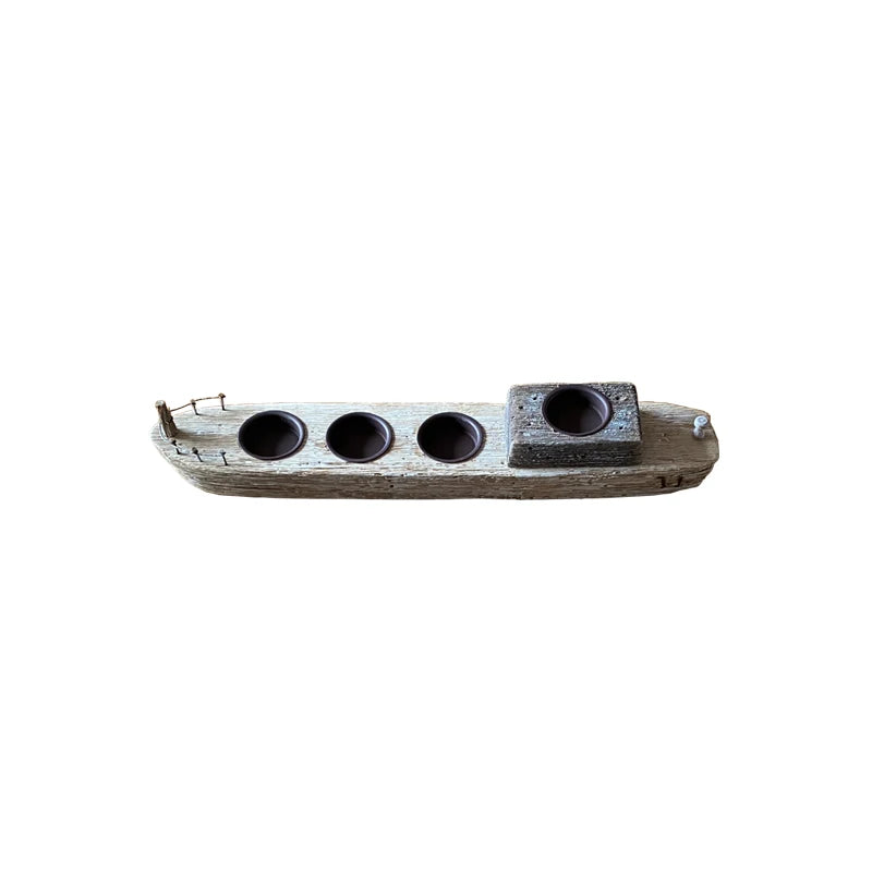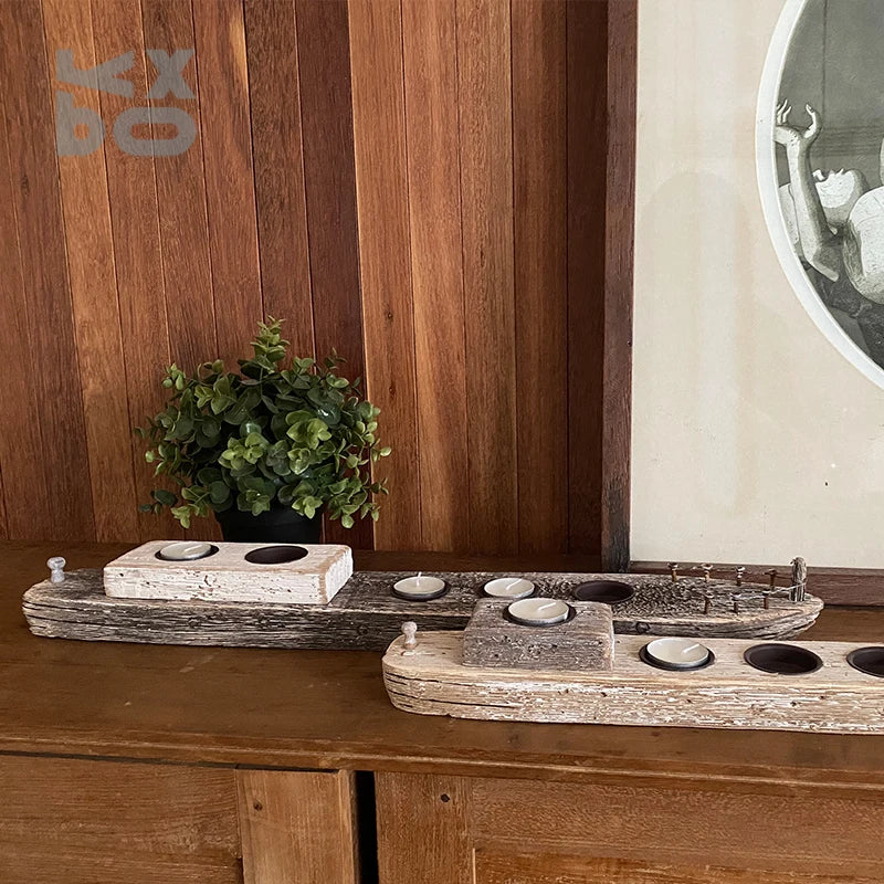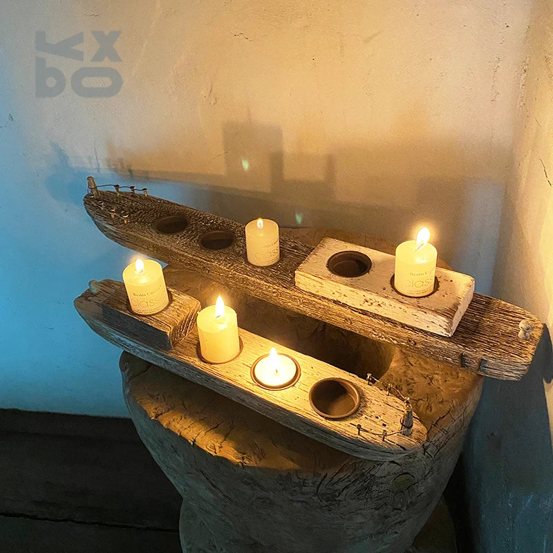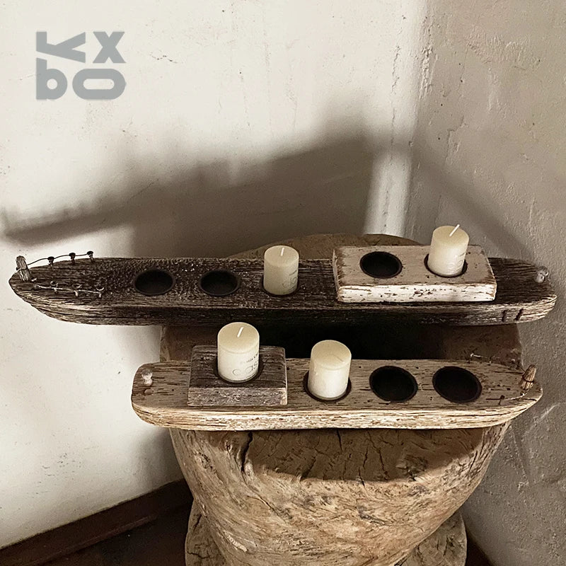 YBOX handmade wooden candle holder ship shape vintage style candle stand holder