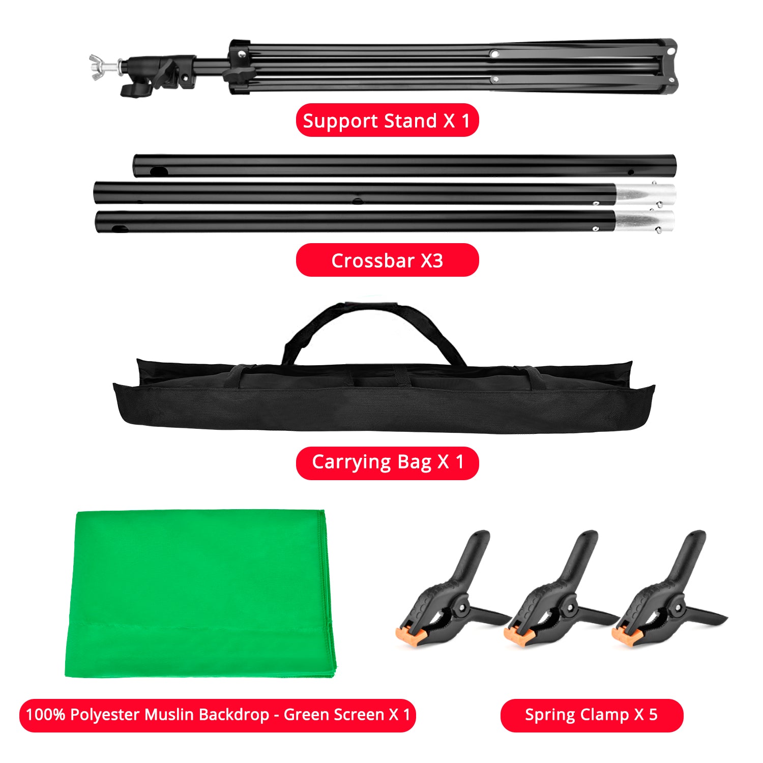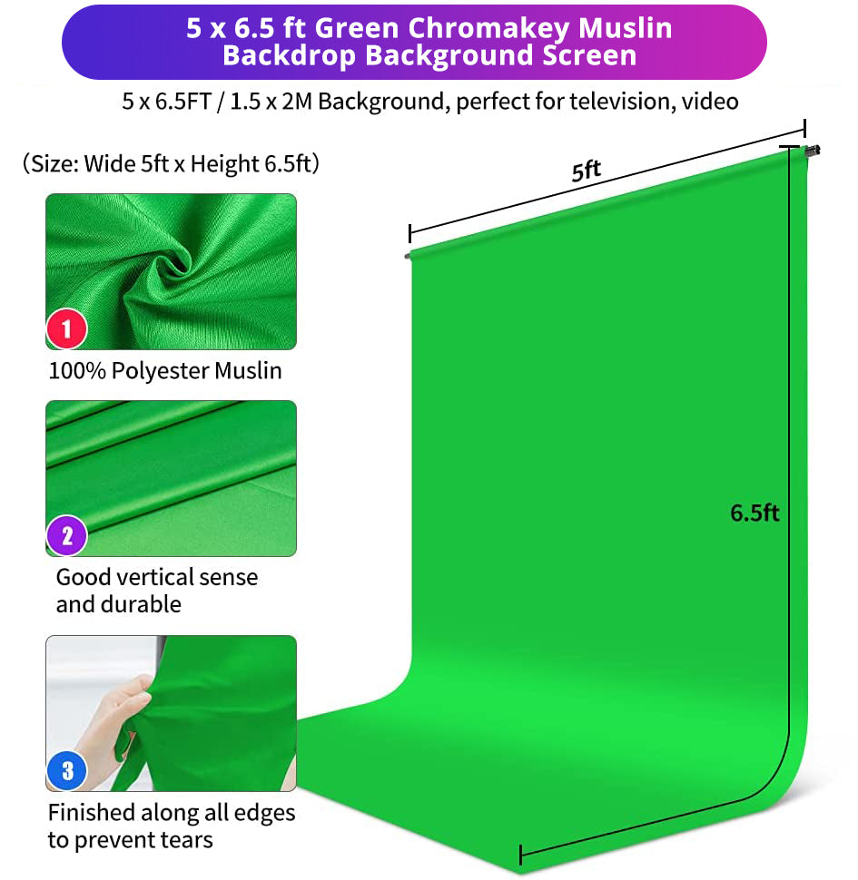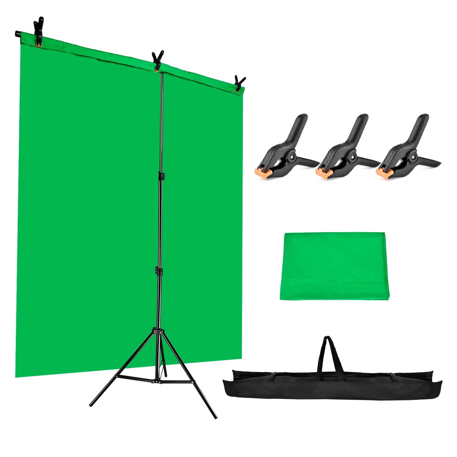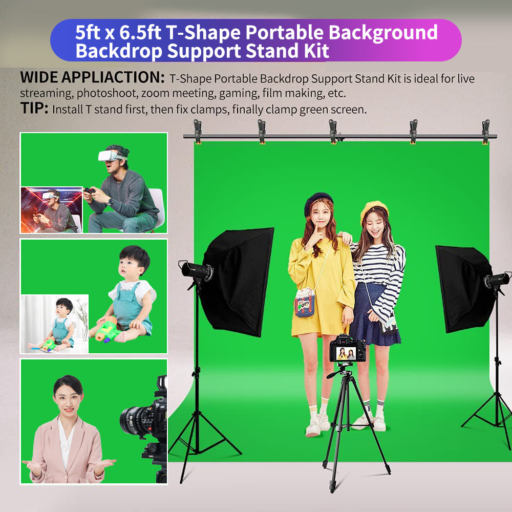YELANGU Green Screen Backdrop with Stand kit 6.5X5ft Portable Photographic Studio Photo Background for Streaming