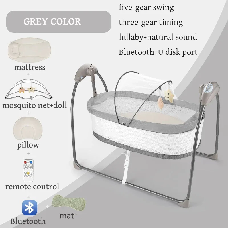 Yokids Factory Grey New Style Rocking Baby Cradle Crib for Newborn