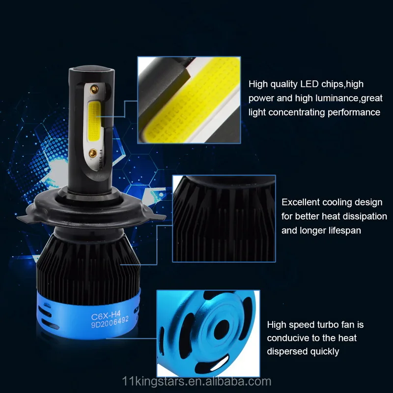Yosovlamp hot sale 2pcs c6 Light H4 H7 H11 9005 9006 G5 X3 C6 for Golf 6 7 Polo T5 c6x Car civic city fit accord LED Headlight