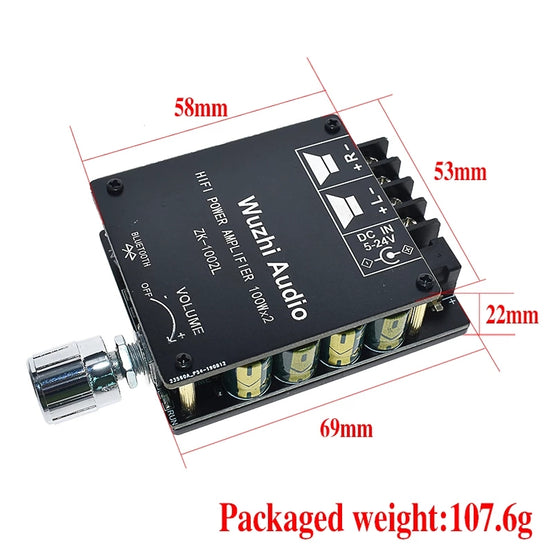 ZK-1002L 100WX2 Mini Audio Power Digital Amplifier Board Stereo Amp DC 12V 24V