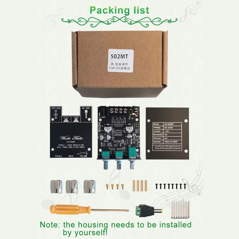 ZK-502MT Subwoofer Amplifier Board 2.0 Channel High Power Stereo Amplifier Board Bass AMP
