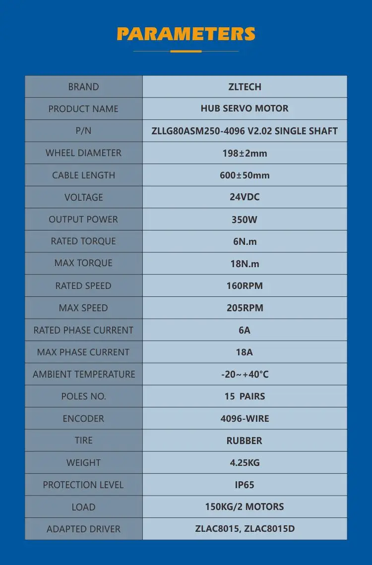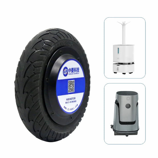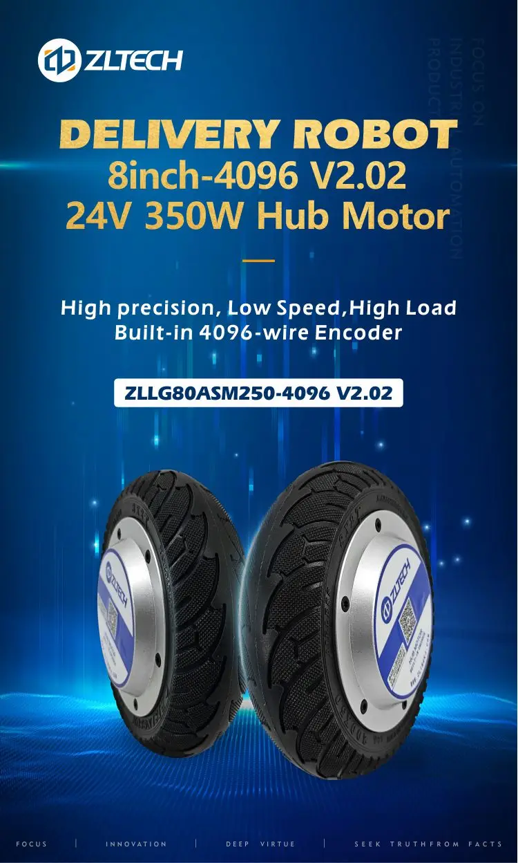 ZLTECH 8inch 24V 350W 6N.m 160RPM IP65 150kg load rubber tire electric driving wheel hub servo motor with encoder for wheelchair