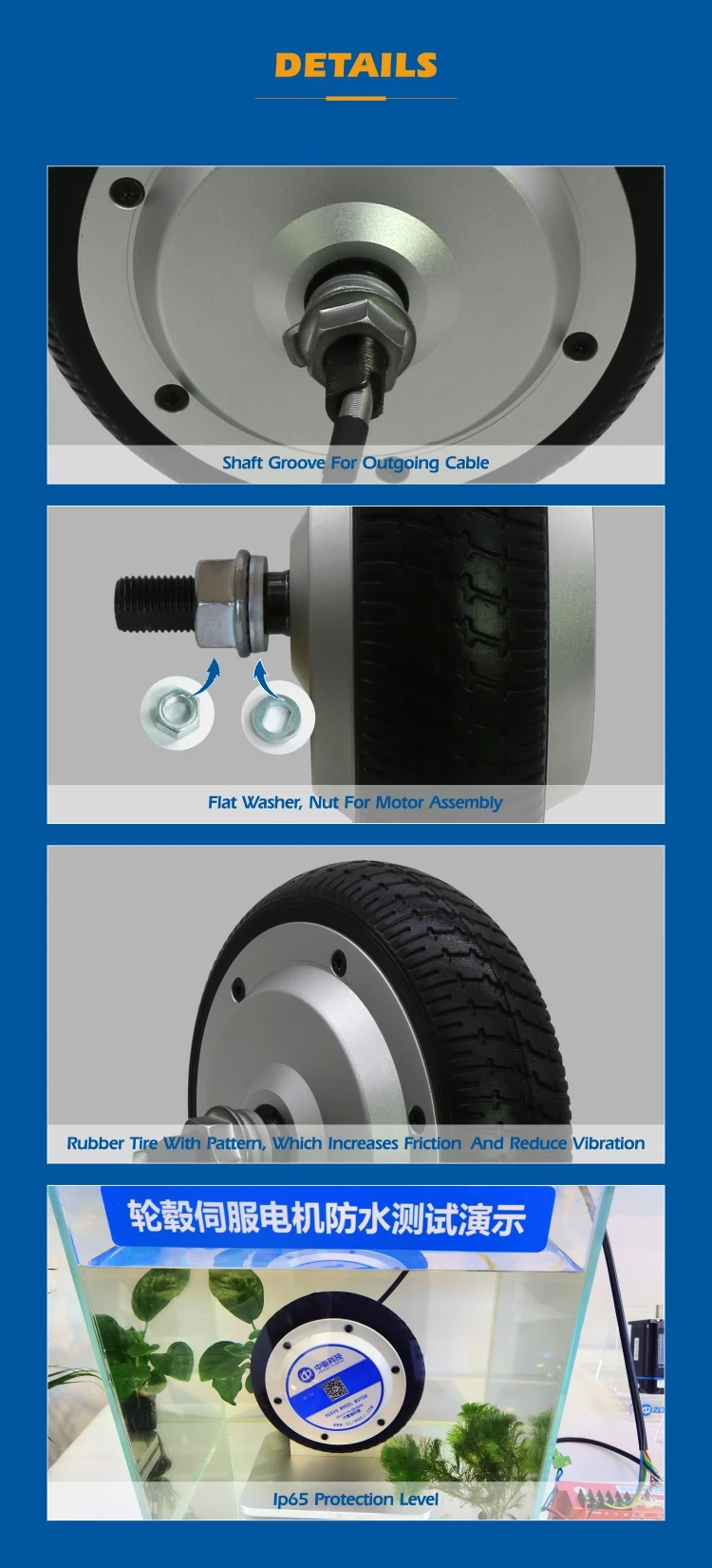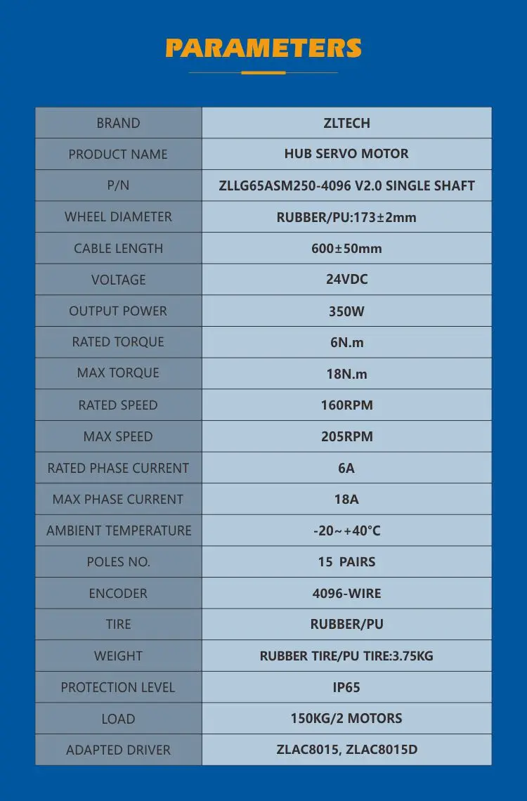 ZLTECH electric inwheel brushless DC 350W 24V 48V 6.5inch 150kg load 6N.m BLDC hub servo motor with encoder for delivery robot