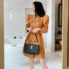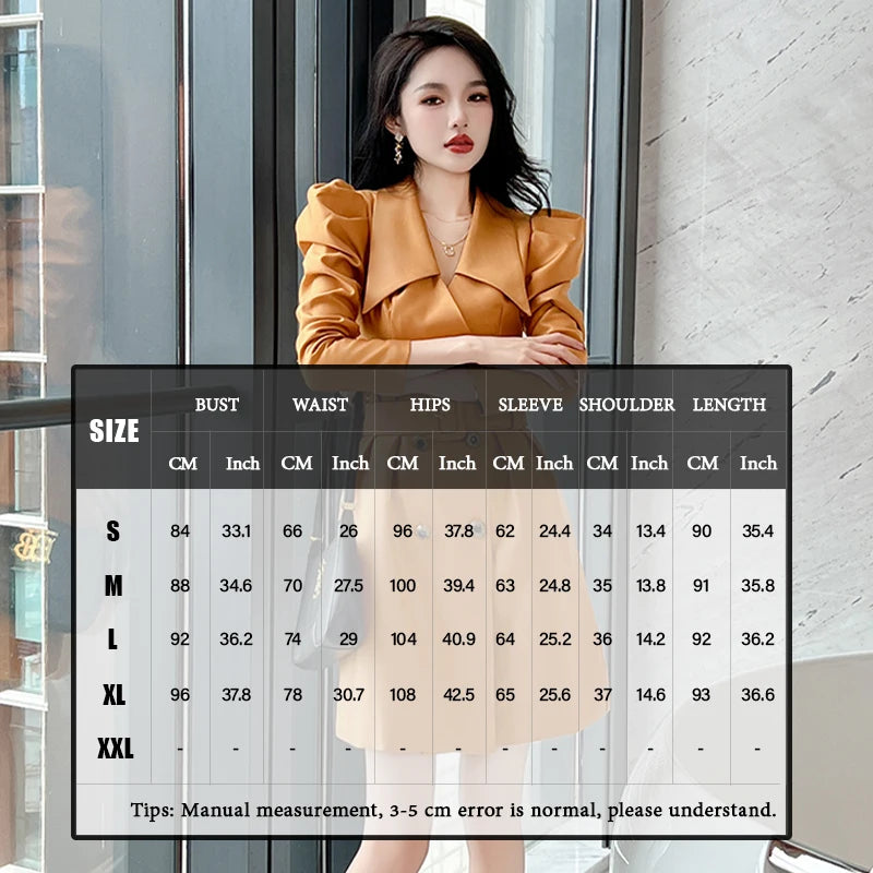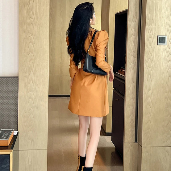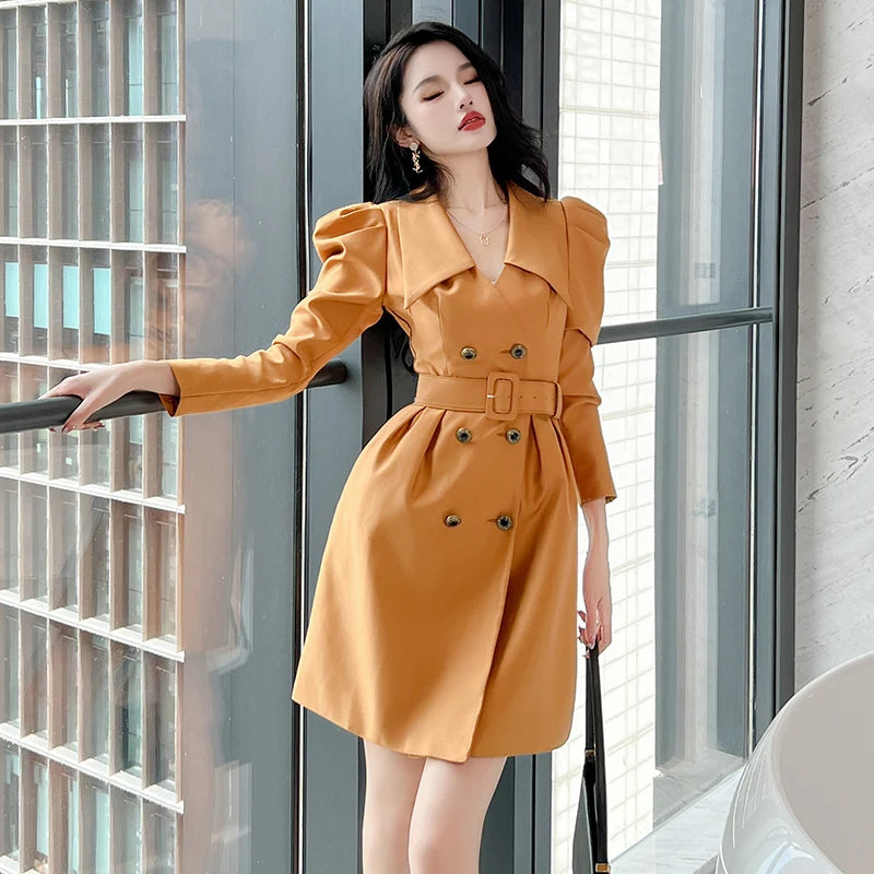 ZYHT 10219 Autumn New Lapel Waist Double-breasted A-line Suit Dress Fashion Solid Woven Belted Blazer Dresses Lady