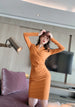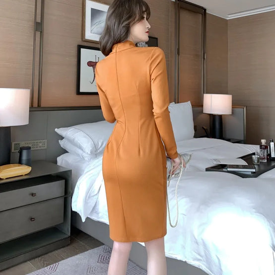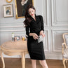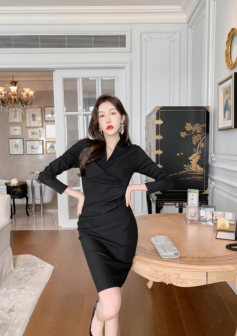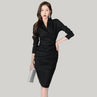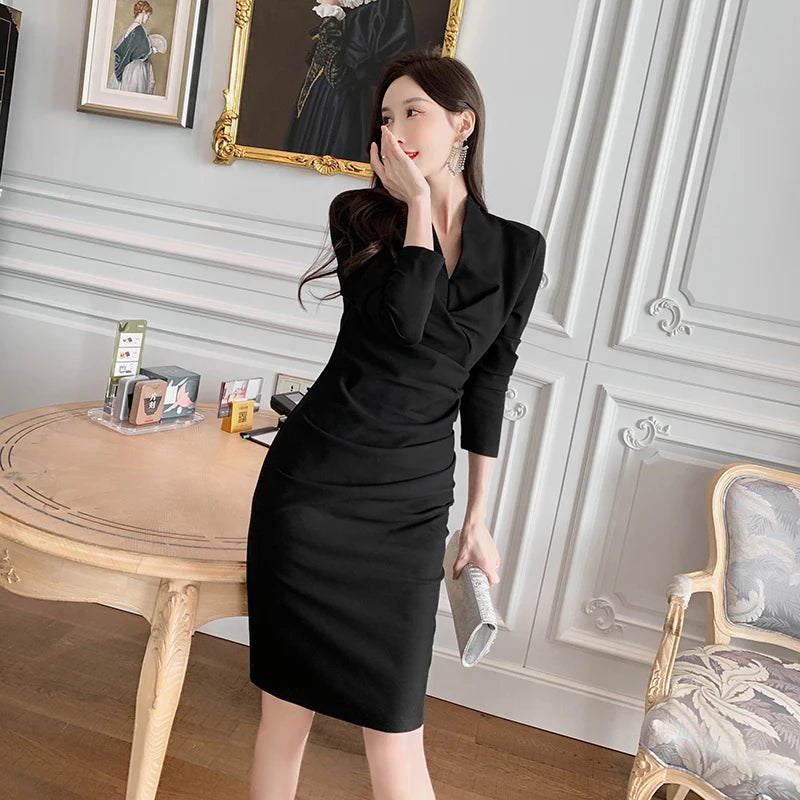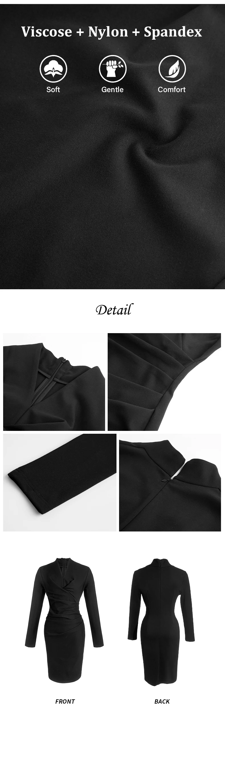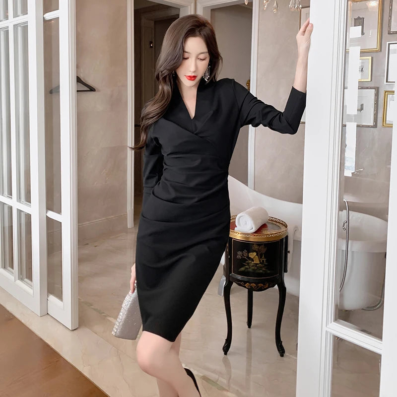 ZYHT 4557 Women Luxury Clothing 2024 Women Bodycon V Neck Elegant Long Sleeve Black Office Dresses Ladies